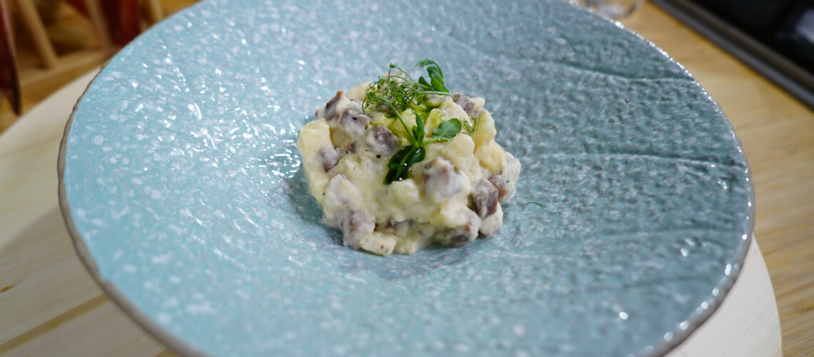 A borjúnyelves rizottó zellerkrémmel egy rendhagyó recept, hiszen nincs benne rizs csak főtt borjúnyelv és zeller, valamint érett juhsajt. Egy pici türelemmel fenséges és tartalmas ebédet készíthetünk.