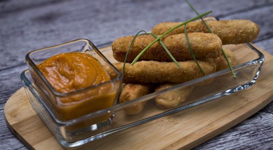 A főtt, áttört, lehűtött burgonyát alaposan összedolgozzuk az egész tojással, egy tojás sárgájával és a liszttel. Beleforgatjuk a darabolt sonkát, sózzuk, borsozzuk. Rudakat formázunk belőle és tojásba, zsemlemorzsába forgatva bő forró olajban kisütjük. A sült sütőtököt a héjából kivéve friss bazsalikommal, paradicsomlével, zúzott fokhagymával leturmixoljuk. Mézzel és sóval ízesítjük. Tálaláskor a krokettet ebbe mártogatjuk.