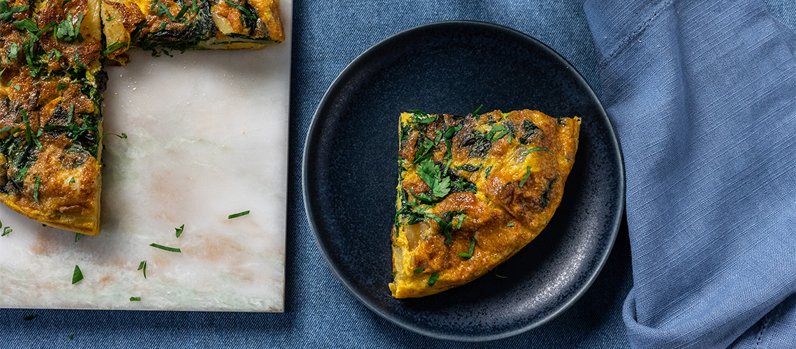 Egy kis serpenyőbe tesszük az olajat, felmelegítjük közepes lángon, nem szabad, hogy forró legyen. A meleg olajban puhára főzzük a burgonyát, majd az olaj felét leöntjük, a burgonyához adjuk a durvára vágott spenótot, összeforgatjuk, majd ha a spenót összeesett, a tojásokat is a serpenyőbe öntjük. Addig sütjük közepes hő felett, amíg annyira megszilárdul, hogy meg tudjuk fordítani. Megfordítás után csak 1 percig pirítjuk és azonnal tálaljuk. Melegen a legfinomabb, de hidegen is fogyasztható.