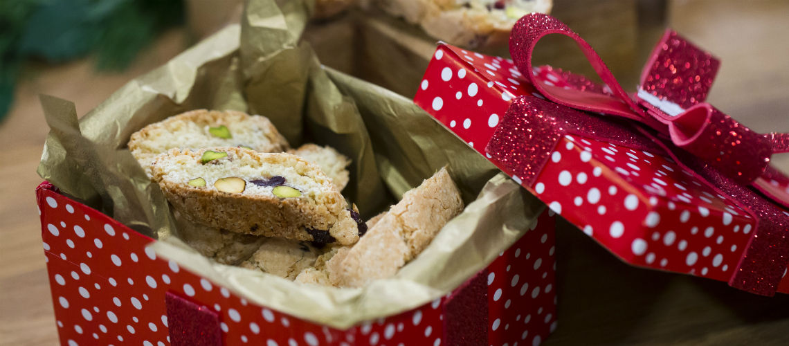Minden hozzávalót egy tálban összekeverünk, a pisztáciát és az áfonyát csak akkor adjuk hozzá, ha már összeállt a tésztánk. Kicsit gyúrjuk kézzel, amíg össze nem áll, de ne lepődjünk meg, nagyon ragadós lesz. Ezen csak a sok kézlisztezés segít. Két kis hengert formázunk a tésztából, mehet a kettő egymás mellé egy nagy gáztepsire, és 180 fokon 20-25 percig sütjük. Ezután kivesszük, rácson hagyjuk hűlni egy kicsit, a sütőt pedig levesszük 140 fokra.