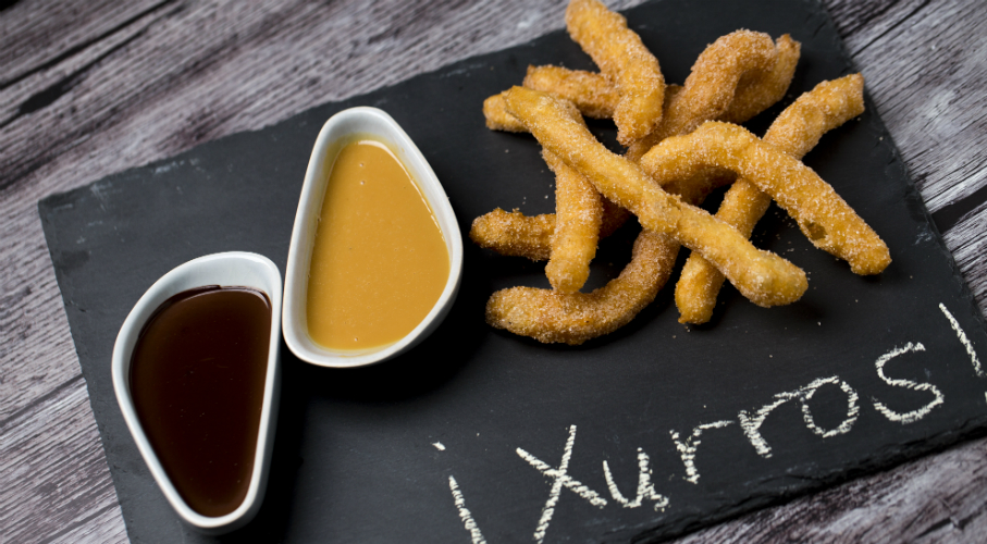 Churros: A vajat, margarint feltesszük a vízzel egy edényben. Amikor gyöngyöni kezd, tegyük bele a cukrot és egy csipet sót, majd szórjuk bele az összes lisztet és egy fakanállal keverjük el csomómentesre. Amikor már kis golyóvá vált a tésztánk, még egy percig hagyjuk a tűzön az edényt és kevergessük, égessük a tésztát. Ezután hűlni hagyjuk 5-10 percig majd hozzákeverjük a tojásokat. A tésztát habzsákba töltjük, csillagcsővel forró olajba kis csíkokat nyomunk, és megsütjük. Még melegen fahéjas kristálycukorba forgatjuk.