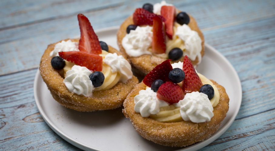 A vajat, margarint feltesszük a vízzel egy edényben. Amikor gyöngyöződni kezd, tegyük bele a cukrot és egy csipet sót, majd szórjuk bele az összes lisztet és egy fakanállal keverjük el csomómentesre. Amikor már kis golyóvá vált a tésztánk, még egy percig hagyjuk a tűzön az edényt és kevergessük, égessük a tésztát. A tojásokat kézi mixerrel keverjük hozzá a tésztához. A tésztát egy muffintepsi hátuljára nyomjuk csillagcsővel, bevonjuk körbe a tepsi kiemelkedéseit, melyeket előzőleg megolajoztunk és fóliával letakartunk Fagyasztóba tesszük, majd onnan kivéve bő olajban kisütjük. Fahéjas kristálycukorba forgatjuk.Megtölthetjük fagylalttal, csokikrémmel.
