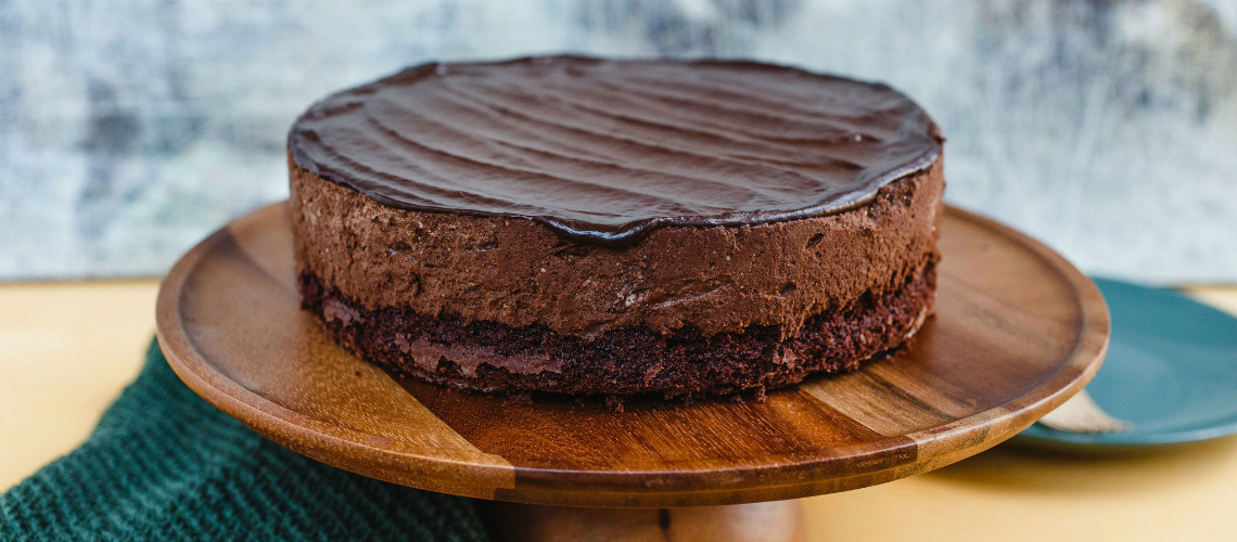 A tetejére a csokimázhoz forráspontig melegítjük a tejszínt (nem hagyjuk felforrni), beletördeljük a csokoládét, fényesre keverjük, majd hagyjuk langyosra hűlni és szétkenjük a torta tetején.