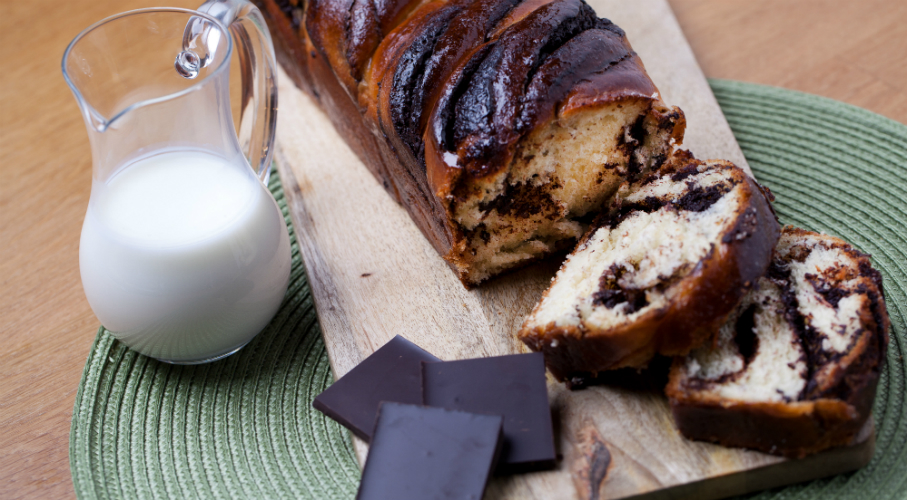 A hozzávalókat robotgépben összedagasztjuk, és egy napig a hűtőben kelesztjük. A csokit és vajat vízgőz fölött felolvasztjuk, hozzákeverjük a kakaót és a porcukrot. A tésztát kinyújtjuk, megkenjük a csokis keverékkel és feltekerjük. Hosszában kettévágjuk. A két szálat összefonjuk, kiolajozott sütőformába tesszük és még másfél órát kelesztjük A vízből és cukorból cukorszirupot készítünk. A kalácsot 200 fokos sütőben 25 percet sütjük, végén cukorsziruppal megkenjük.