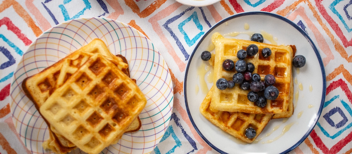 Forró gofrisütőben kisütjük a gofrikat.