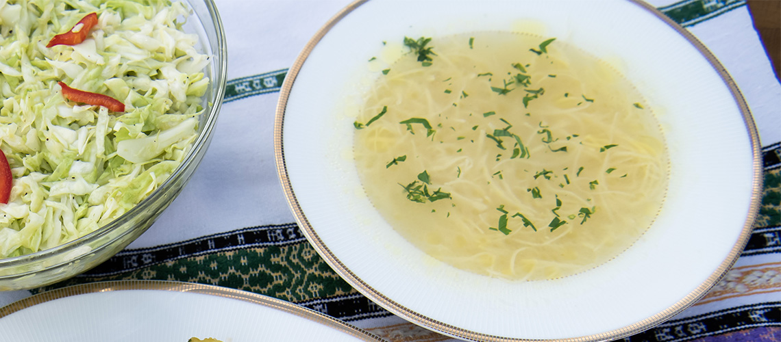 A kifőtt tésztát a forró leveshez adjuk.