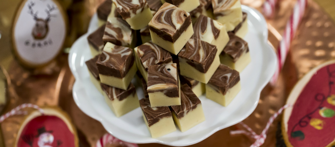 A fehércsokit megolvasztjuk a sűrített tejjel együtt, majd belekeverjük a mézesfűszert és a vaníliát. Ha szeretnénk, egy kisebb részt kivehetünk és az étcsokival “beszínezhetünk”. Vajazott, sütőpapírozott tepsibe öntjük és kihűtjük.