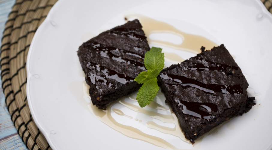 A hajdinát átöblítjük és egy edényben 5-6 percig főzzük, majd hagyjuk, hogy megpuhuljon. Ezután hozzáadjuk a kókusztej felét és összeturmixoljuk. Vízfürdő felett felolvasztjuk a csokoládét és a vajat. Hozzáadjuk a kókusztejet, kakaót, fahéjat, sót, cukrot, tojásokat és összekeverjük. Az így előkészített tésztát egy kivajazott formába töltjük és kisütjük. A kész sütit juharsziruppal és friss mentalevéllel díszítve kínáljuk.