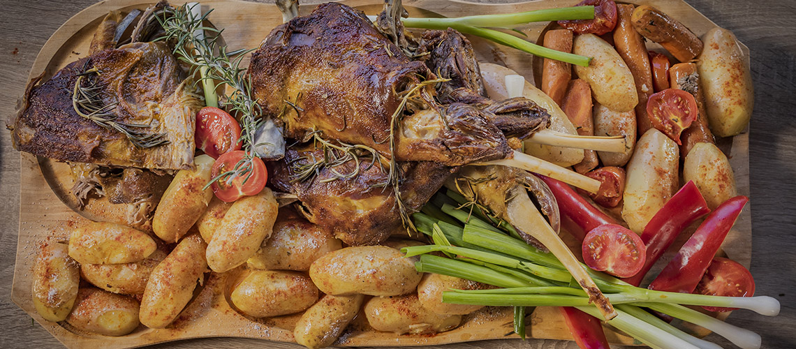Egy bárányt őrölt rozmaringban, köménymaggal, borssal sok sóval egy éjszakán át bepácolunk. A sütés előtt még paprikás rozmarongos olajjal megkenegetjük. Amikor már mind a két oldalt alaposan átkenegettük, akkor a maradék olajos pácot a tepsibe a bárány alá öntjük. Sertés zsírt teszünk alá, kevés vizet is, majd lefedjük és betoljuk a 300 fokos kemencébe. Kis idő múltán ránézünk a bárányra, és újra kis vizet öntünk alá. Locsolhatjuk fehérborral. Mikor a bárány már puhul, még további rozmaringot tehetünk mellé, és félbe vágott krumplikkal tegyük körül a bárányányt. Paradicsomot, répát is helyezünk az edénybe, és mire a krumplik is megsülnek a bárány is tökéletesen el fog készülni.