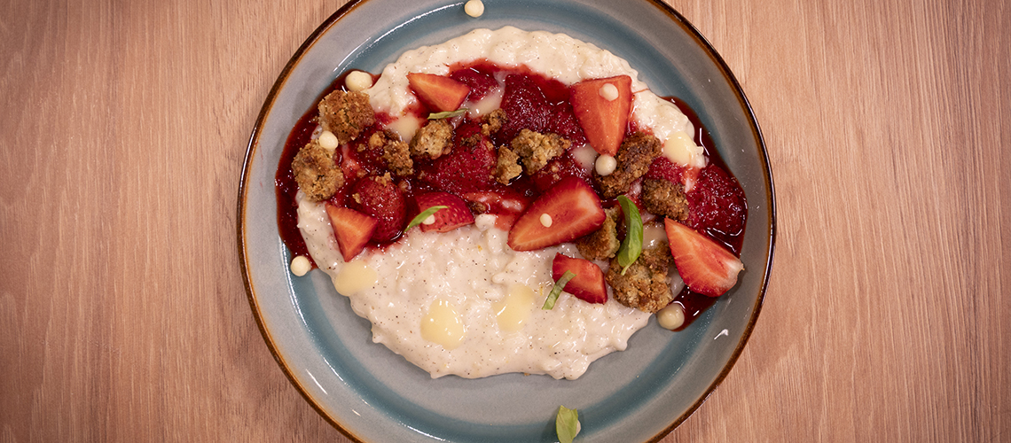 6. Ha a rizs megpuhult, félretesszük pihenni egy picit. Végül a langyos tejberizst és az angolkrémet összeforgatjuk.