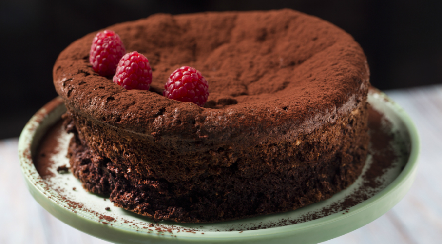 A mandulát 5 dkg cukorral aprítógépben ledarálom, a gép méretétől függően 1-2 részletben. A darálékhoz hozzáadom a csokoládét és ismét apróra darálom, hogy a csokoládé is morzsákra essen szét, félreteszem. A narancslevet összekeverem a narancshéjjal és a kakaóval (sűrű massza lesz), ezt is félreteszem. A tojássárgákat 13 dkg cukorral és a vaníliakivonattal (vagy a vaníliarúdból kikapart vaníliával) robotgéppel jól kekeverem, amíg egészen világos sárga, krémes nem lesz. Ehhez adom a narancsos kakaómasszát, simára keverem. Hozzáadom a mandulás csokis keveréket is, ezzel is egyenletesen elkeverem. A tojásfehérjét a sóval habbá verem. Amikor elkezd habosodni, beleszórom a maradék 2 dkg cukrot és kemény habbá verem. A fehérjehabot az összekevert masszához óvatosan, több adagban hozzákeverem, vigyázva, hogy ne törjem össze a habot. Az egészet kivajazott sütőformába teszem (kisebb, csatos tortaforma) és 180 fokos sütőben 30-35 perc alatt készre sütöm. Meg kell szúrni, ha nem tapad a késre a tészta, gyorsan ki kell venni a sütőből, nem jó ha kiszárad! Felvágás előtt hagyni kell kihűlni, mert könnyen morzsálódik. Kakaóporral meghintve
