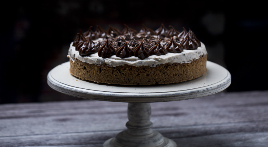 A puha vajat a cukorral és a vaníliás cukorral kihabosítjuk, ezután jön bele a mogyoróvaj és a tojás. Hozzáadjuk az aprított mogyorót a csokit, a sütőporos-szódabikarbónás lisztet. Összedolgozzuk. Egy fóliába tekerve a hűtőbe tesszük. A masszát egy sütőpapíros tortaforma aljára és picit az oldalára nyomkodjuk, elősütjük 180 fokos sütőben 30 perc alatt. Az összetördelt kekszet összekeverjük a mascarponéval, cukorral, habbá vert tejszínnel. A krémet a megsült keksztészta alapra halmozzuk.