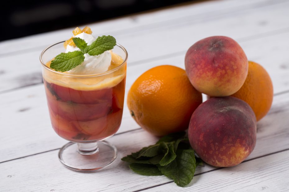 A bort és a Cointreau-t felforraljuk benne az őszibarackkal.