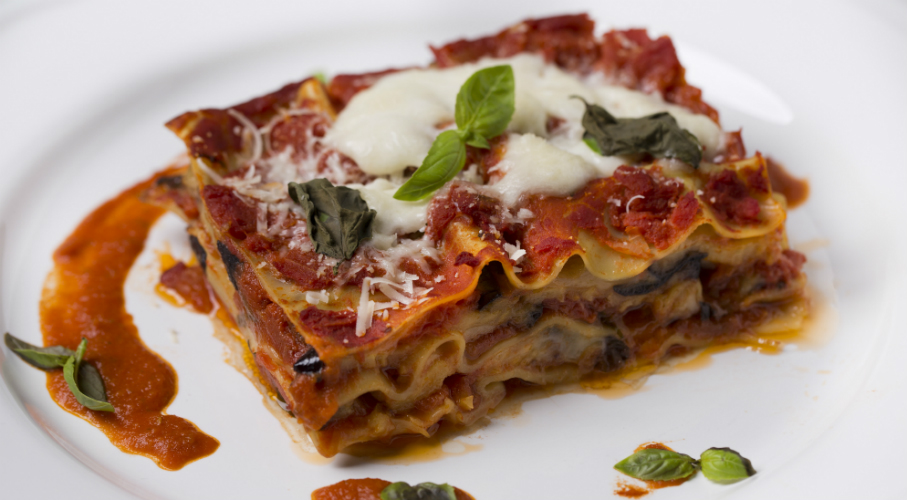 Majd egy réteg paradicsomot, aminek a leve átitatja a lasagne lapokat, és így sütés közben megpuhul a tészta.