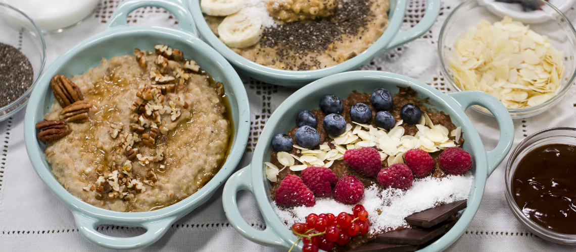 A kesz zabkását friss gyümölcsökkel, magokkal, étcsokoládéval diszitjük.