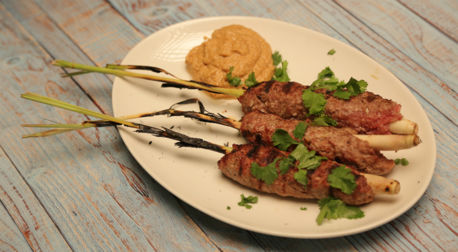 A darált húsokat összekeverjük szójaszósszal, osztrigaszósszal és fokhagymával. Nagy, buzogány alakú fasírozottat készítünk, de úgy, hogy a citromfű szár végére tesszük, mintha „nyele” lenne. Grillen megsütjük.