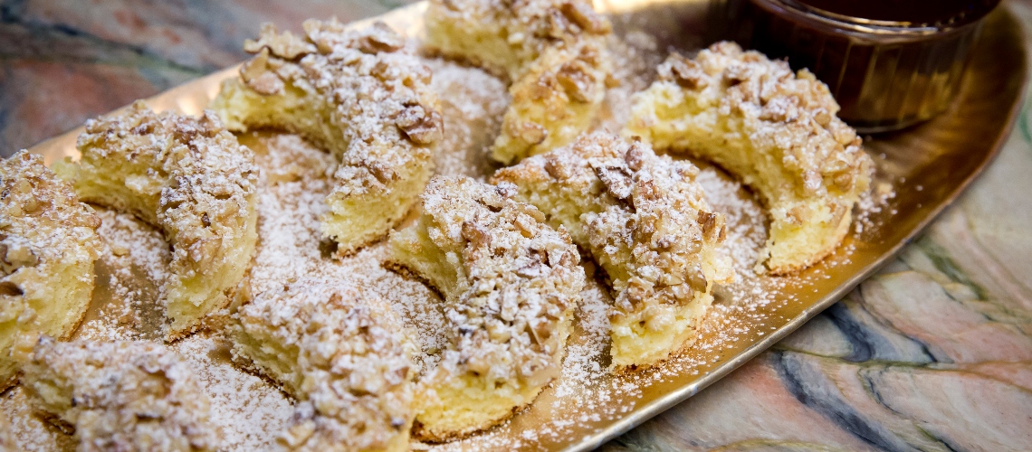 A vajat, a zsírt a cukorral, a tojások sárgáival, a citrom héjával és levével habosra keverjük. Összeforgatjuk a liszttel, sütőporral és a felvert tojáshabbal. Zsírozott tepsibe öntjük, meghintjük a dióval és 180 fokos sütőben megsütjük.