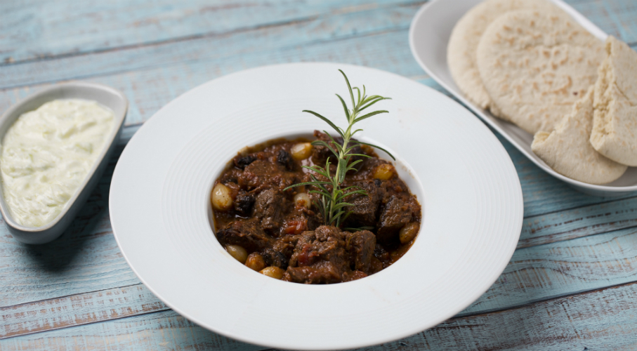 A nagyobb kockára vágott marhahúst olívaolajon megpirítjuk, majd kiszedjük az edényből. Ugyanazon az olajon megpároljuk a finomra vágott vöröshagymát, felöntjük vörösborral, visszarakjuk a húst, lepirítjuk és hozzáadjuk a paradicsomot. Fűszerezzük a fahéjjal, a babérlevéllel, a borssal, a szegfűszeggel, illetve a friss rozmaringgal. Sózzuk. Puhára főzzük, majd a legvégén hozzáforgatjuk a mazsolát és a külön olajon pirított gyöngyhagymát. Kevés cukorral és balzsamecettel ízesíthetjük még. Friss kenyérrel vagy salátával tálaljuk.