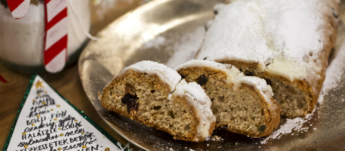 A meleg stollent meglocsoljuk olvasztott vajjal és megszórjuk porcukorral. Ezt addig ismételjük, amíg a porcukorréteg megmarad rajta.