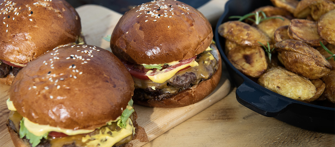 A burgert sült burgonyával kínáljuk.