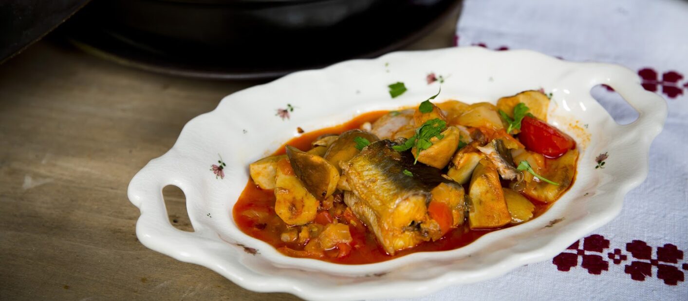 A megtisztított fejnélküli pontyot és az angolnát szeletekre vágjuk, a paprikát, paradicsomot, fokhagymát feldaraboljuk. A felaprított szalonnát mérsékelt tűzön a zsírjából kisütjük. Megfonnyasztjuk benne a hagymát, majd lehúzzuk a tűzről, rádobjuk a fokhagymát, a felaprított paprikát és a paradicsomot, majd megszórjuk a pirospaprikával, és ízlés szerint megsózzuk. Visszatesszük a tűzre, és néhány percig fedő nélkül forraljuk. Ezután hozzáadjuk a vargányát. Pár perc múlva hozzáadjuk a felszeletelt angolnát és egy kevés rozé bort töltünk hozzá. 15-20 perc múlva hozzáadjuk a pontyszeleteket és hagyjuk tovább párologni. Ha a halak megfőttek túróstésztával tálaljuk.