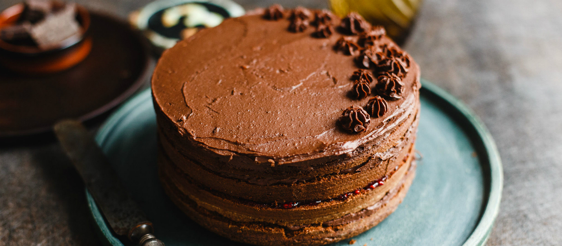 A lisztet elkeverjük a sütőporral. A tojásokat a cukorral fehéredésig verjük, majd hozzákeverjük az olvasztott vajat és a tejet, végül pedig a lisztes keveréket is beledolgozzuk. Az előkészített formába öntjük és 175 fokra előmelegített sütőben 40-45 percig sütjük. Szúrópróbát végzünk és ha nem tapad a tészta a késre, kivesszük a sütőből. Hagyjuk kihűlni, kiborítjuk a formából és 4 lapot vágunk belőle. A tejszínt egy közepes lábasban forráspontig melegítjük (ne forraljuk fel!). Lehúzzuk a tűzről, beletördeljük a csokoládékat és addig keverjük, amíg sűrű, fényes krémet kapunk. 30 percre a hűtőbe tesszük.