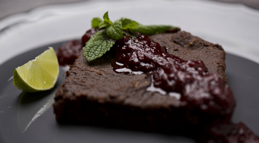 A meghámozott batátát puhára főzzük. Pürésítjük, majd a csokoládés keverékhez adjuk. A csokoládés keverékhez vízfürdő felett felolvasztjuk a csokoládét és a vajat. Hozzáadjuk a cukrot, a tojásokat, a lisztet, majd legvégül a batátát. Formába töltjük és 170 fokon 30 percig sütjük. A kihűlt browniet az eperszósszal tálaljuk. A szószhoz egy edényben állandó keverés közben redukciót készítünk az eperből és a kókuszcukorból.