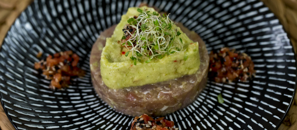 Tálaláskor a tonhal tetejére halmozom az avokádót, köré vagy rá adom a paradicsomot és csírákkal kínálom.