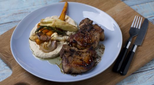 Serpenyős Csontos Karaj Zöldsegpürével És Sült Zöldséggel