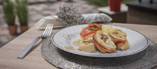 Gombával és májjal töltött baconös csirke
