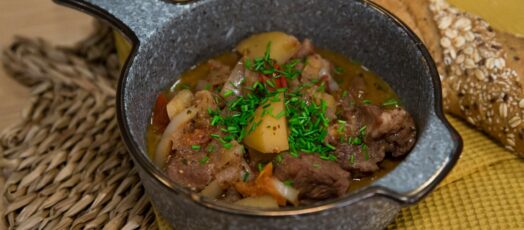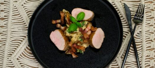 Szűzpecsenye cheddaros burgonyával és szalonnával