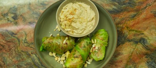 Töltött káposzta tekercsek kesudió szósszal