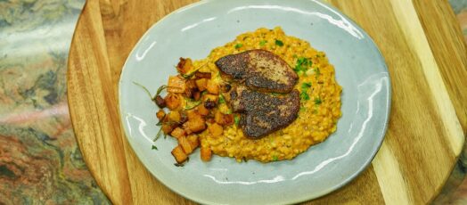 Sütőtökös rizottó libamájjal