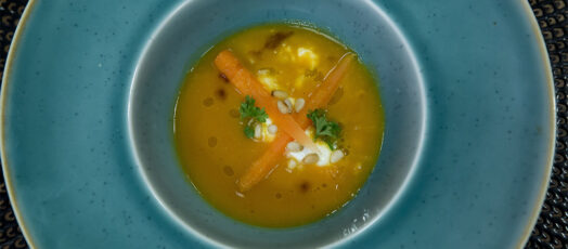 Répakrémleves gyömbérrel, tejföllel, tökmagos pesztóval