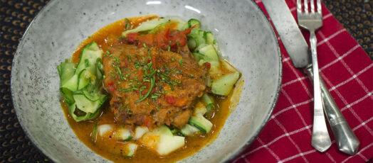 Csirkecomb grillapaprika-mártással és cukkinivel