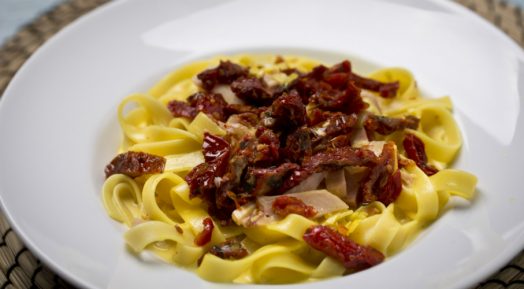 Sáfrányos Tagliatelle Füstölt Sonkával, Aszalt Paradicsommal