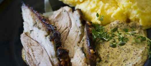 Sült bőrős malac, cideres hagyma