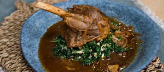 Báránycsülök fekete sörrel, spenóttal