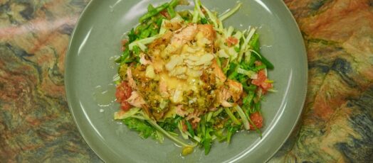 Fűszeres morzsában sült lazac citrusos salátával és grapefruitos pezsgőmártással