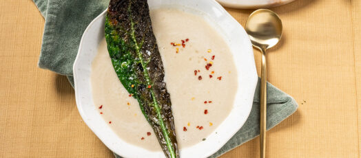 Fehérbab krémleves fodros kel chipsszel
