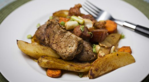 SERTÉS SZŰZ ROKFORTOS ÖNTETTEL, AMERIKAI BURGONYA