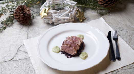 Kacsamell Aszalt Szilvás Lilakáposztával, Cukkinihabbal