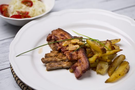 Fűszeres Tarja Szalonnával, Burgonyával, Újkáposzta Salátával