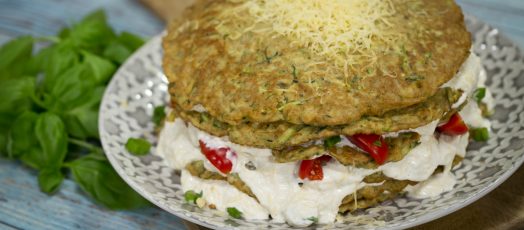 Sós cukkinitorta zöldfűszeres joghurtos krémmel