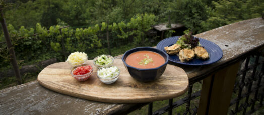 Hideg paradicsomleves és bundázott töltött cukkini