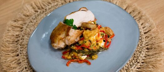 Pirított csirkemell vöröslencse salátával